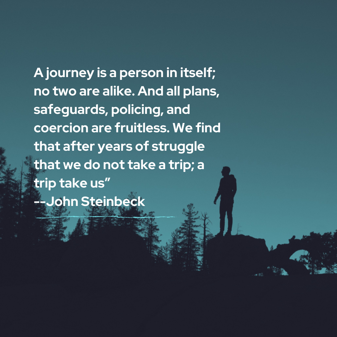A journey is a person in itself; no two are alike. And all plans, safeguards, policing, and coercion are fruitless. We find that after years of struggle that we do not take a trip; a trip takes us.”